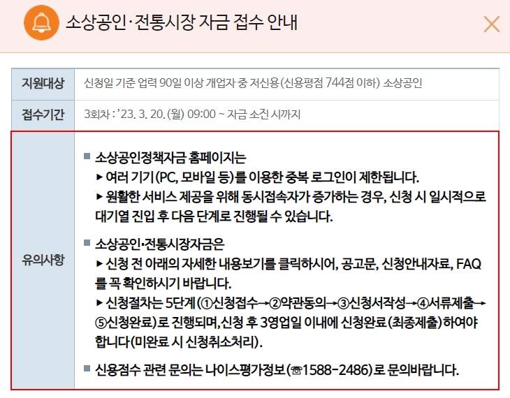 3차 접수 일정은 2023년 3월 20일까지입니다. 이번 3차 접수일은 마지막 접수일이기 때문에, 대출 신청을 고려하는 소상공인들은 미리 준비하여 대출을 받을 수 있도록 준비해야 합니다.