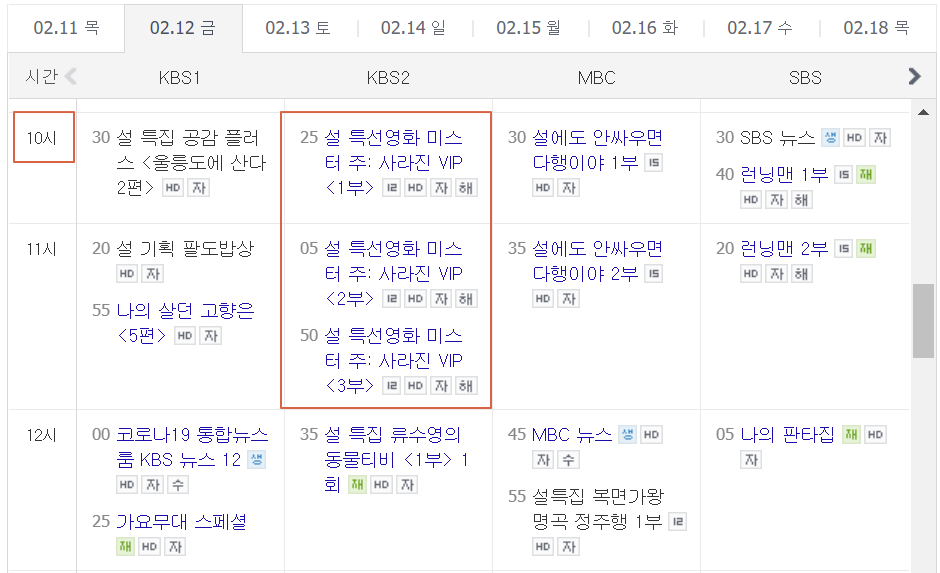 2월 12일 특선영화 공중파 시청하기