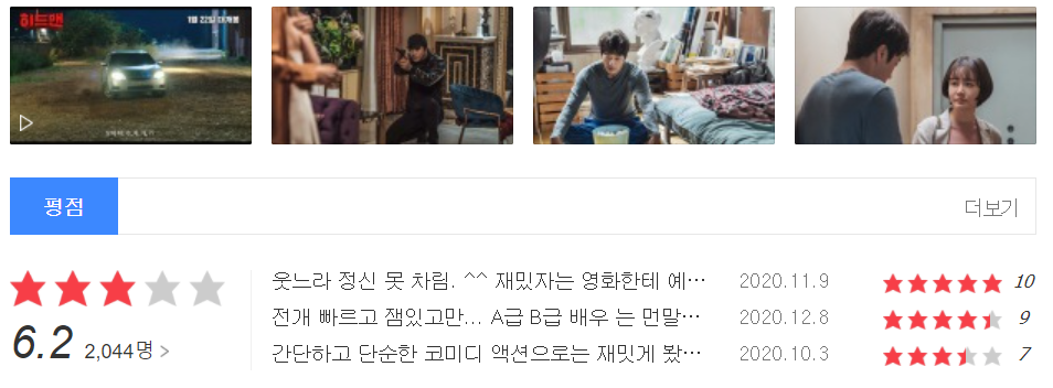 관객수는 60만 초반이 들었지만 개인적으로는 시간 때우기 용으로 충분히 매력적이였고 만족스러웠습니다. 너무 엄청난걸 기대하는 것보다는 그럭저럭 볼만한 걸 찾아볼때 딱 안성맞춤용이라 생각합니다.
