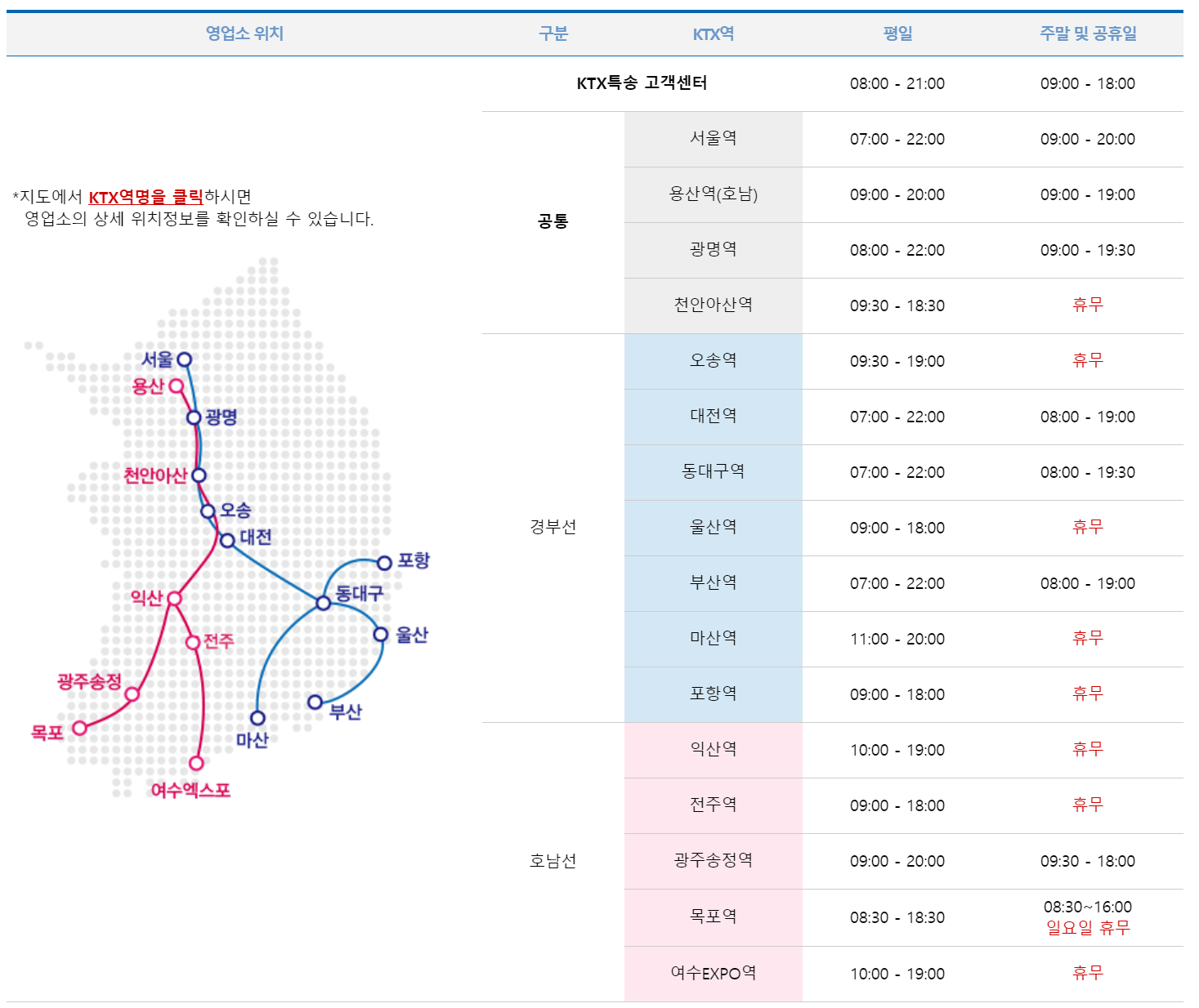 제가 글 맨처음에 첨부한 ktx 특송 시간표를 보면 나오지만 평일 뿐만 아니라 휴일 그리고 공휴일까지도 보내지는 역이 있다는걸 알 수 있습니다. 빨간날에 쉬는 곳도 있지만 아닌 지역을 고려한다면 그동안 보내고 받기까지 시일이 걸렸던 일의 고충을 단숨에 잠재울 수 있다는 점에서 꼭 써보면 어떨까 싶네요.