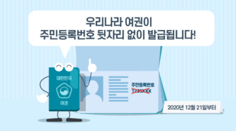 2020년 12월 21일부로 우리나라 여권은 주민등록번호 뒷자리가 없이 발급되고 있습니다. 재발급을 신청하게 되면 다시 나오기까지 4~5일 정도 소요됩니다. 제 기억으로는 평일 업무시간으로 따지는 것 같았습니다. 만일 주말이 껴있게 된다면 토요일과 일요일 기간은 추가로 더해야겠죠?