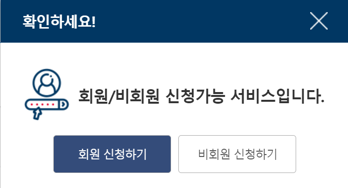 2. 회원 또는 비회원 신청가능하다고 나오지만 나중에 2번 인증하면 귀찮으니 처음부터 해두고 가는게 훨씬 수월합니다.