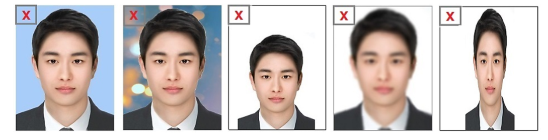 이렇게 표면적인 제약사항을 언급은 하지만 실제 얼굴과 동일하고 아래에서 설명하는 사진 사이즈만 맞춘다면 통과하니 크게 걱정할 필요는 없습니다.