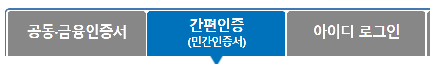 2. 간단하게 인증을 하라고 나옵니다. 공동으로 들어가든 민간으로 하든 상관없습니다. 저는 간편한게 좋아서 늘 이렇게 합니다. 2021년부터 무슨 천지개벽을 한건지 편하게 접근할 수 있도록 로그인 방식이 변경됐습니다.