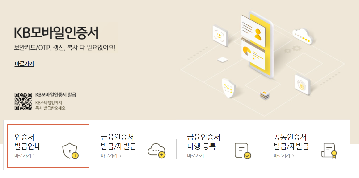 1. '인증서 발급안내'라는 항목이 왼쪽 중앙 하단부에 위치해 있습니다.