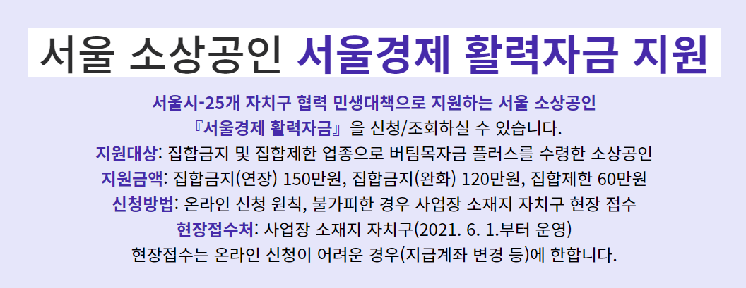 부족한 부분을 채우고자 사람이 서브로 존재하지만 모자란 점은 분명히 존재합니다. 서울시에서 추가로 개인사업자를 대상으로 지원을 하는 만큼 잘 알아보시길 바랍니다. 연락을 따로 주지 않았다고 가만히 있으면 정말이지 아무것도 받지 못하고 끝날 수 있습니다.