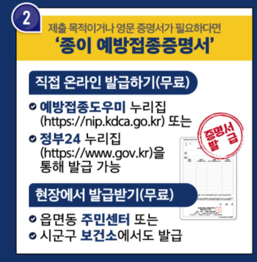 질병청에서 운영하는 예방접종 도우미로 가면 관련 서비스란에 보이는 발급 서비스를 바로 이용할 수 있습니다.