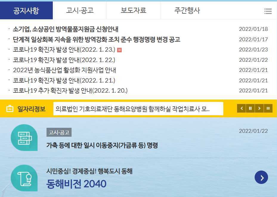 동해시 확진환자나 일상회복을 위한 대책은 동해시청으로 가면 됩니다. 동해시의 일상회복 재난지원금 신청과 현장 오프라인 방문 신청에 관한 안내를 전반적으로 알 수 있습니다.