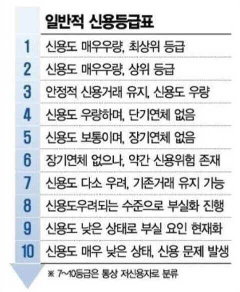 - 1등급 : 942 ~ 1000점 우량 신용자로 구분됩니다
